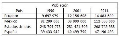 En el 2001, Ecuador tuvo mayor número de habitantes que el resto de países