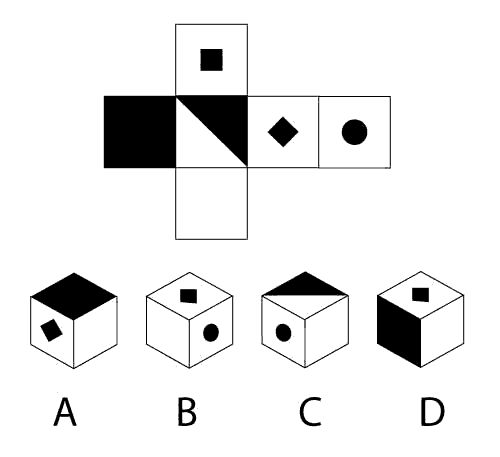 Se muestra una figura desplegada. Determinar el resultado de plegar la misma.